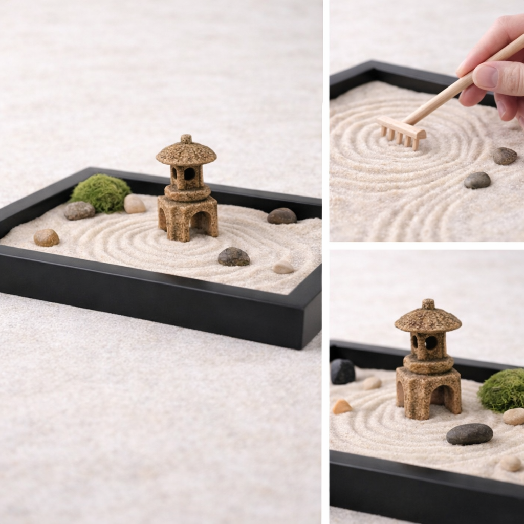 Lotusa Zen Bahçesi, masaüstünde sakinlik ve denge alanı yaratmak için tasarlanmış özel bir ritüel setidir. Doğal kum, taş ve zen figürlerinin bir araya geldiği bu mini bahçe; günün temposundan uzaklaşıp zihni yavaşlatmak, odaklanmayı artırmak ve bulunduğun ortama huzurlu bir dokunuş katmak için ideal bir deneyim sunar.